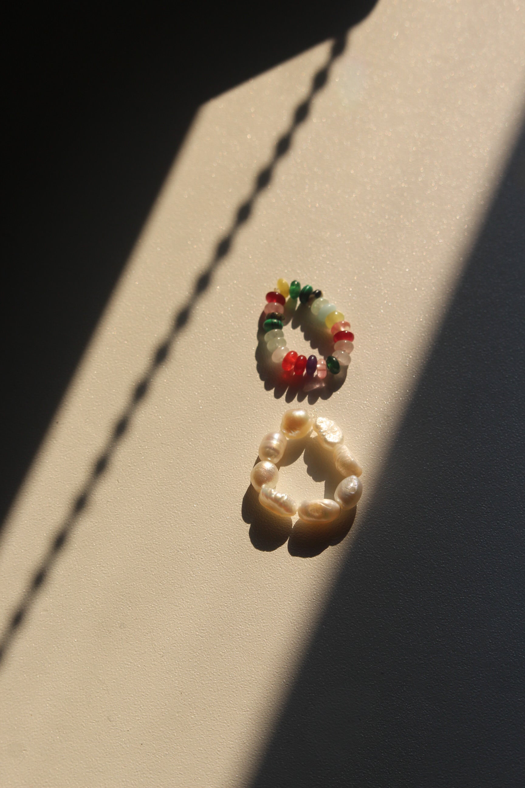 Comme un trésor ramené de la mer, la bague Psari réunit un mélange de pierres naturelles aux couleurs vibrantes. Disponible en grandeurs 4 à 9, elle apporte une touche lumineuse et organique à chaque mouvement.